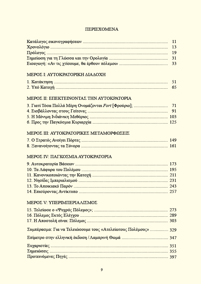 “Μια σαφής ματιά στον ξέφρενο αμερικανικό ιμπεριαλισμό… Ένα βιβλίο που θα αναστατώσει την ψυχή σας… για δράση.” – Συνταγματάρχης Col. Lawrence Wilkerson, πρώην αρχηγός επιτελείου, Υπουργείο Εξωτερικών των ΗΠΑ, καθηγητής στο Κολλέγιο William & Mary