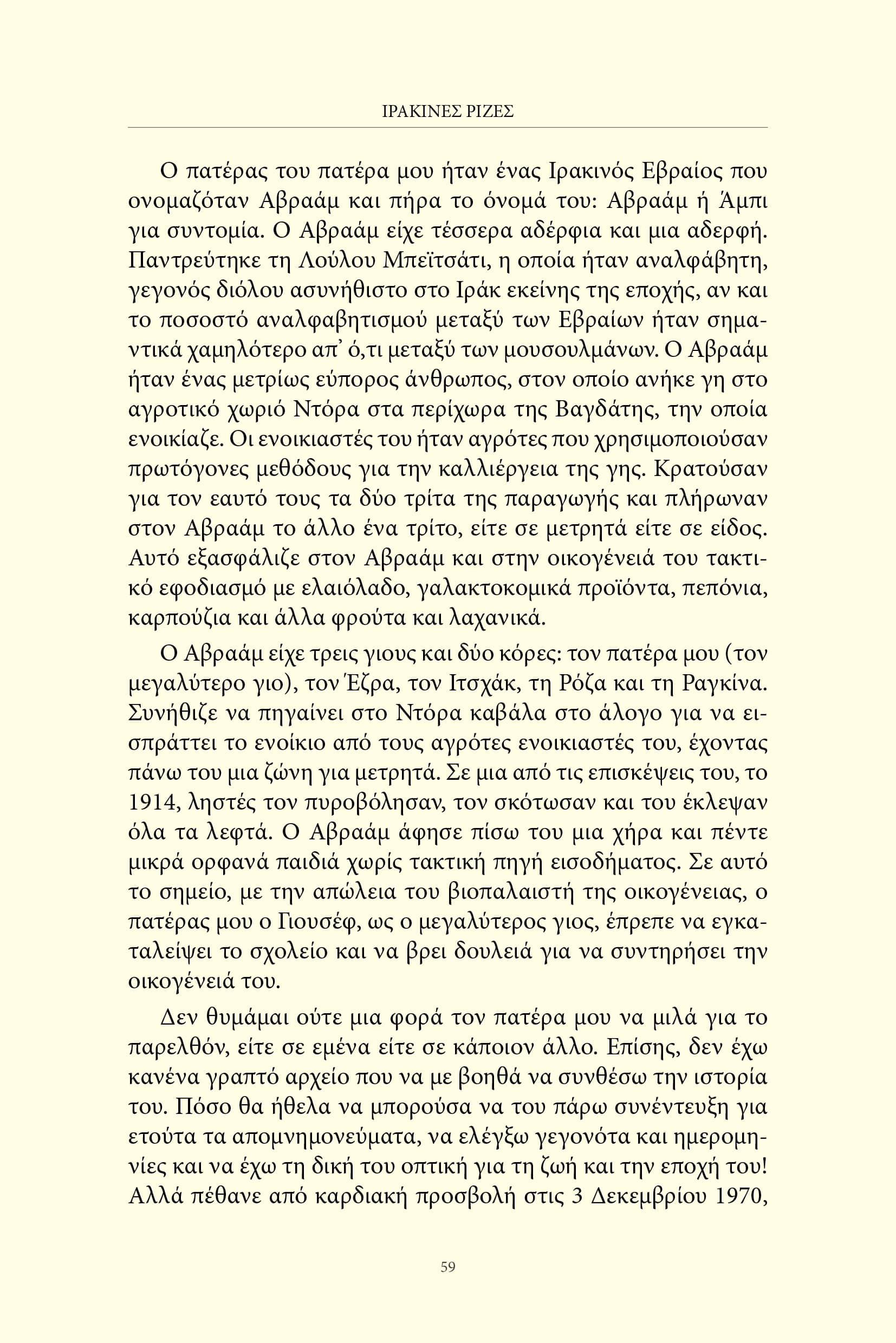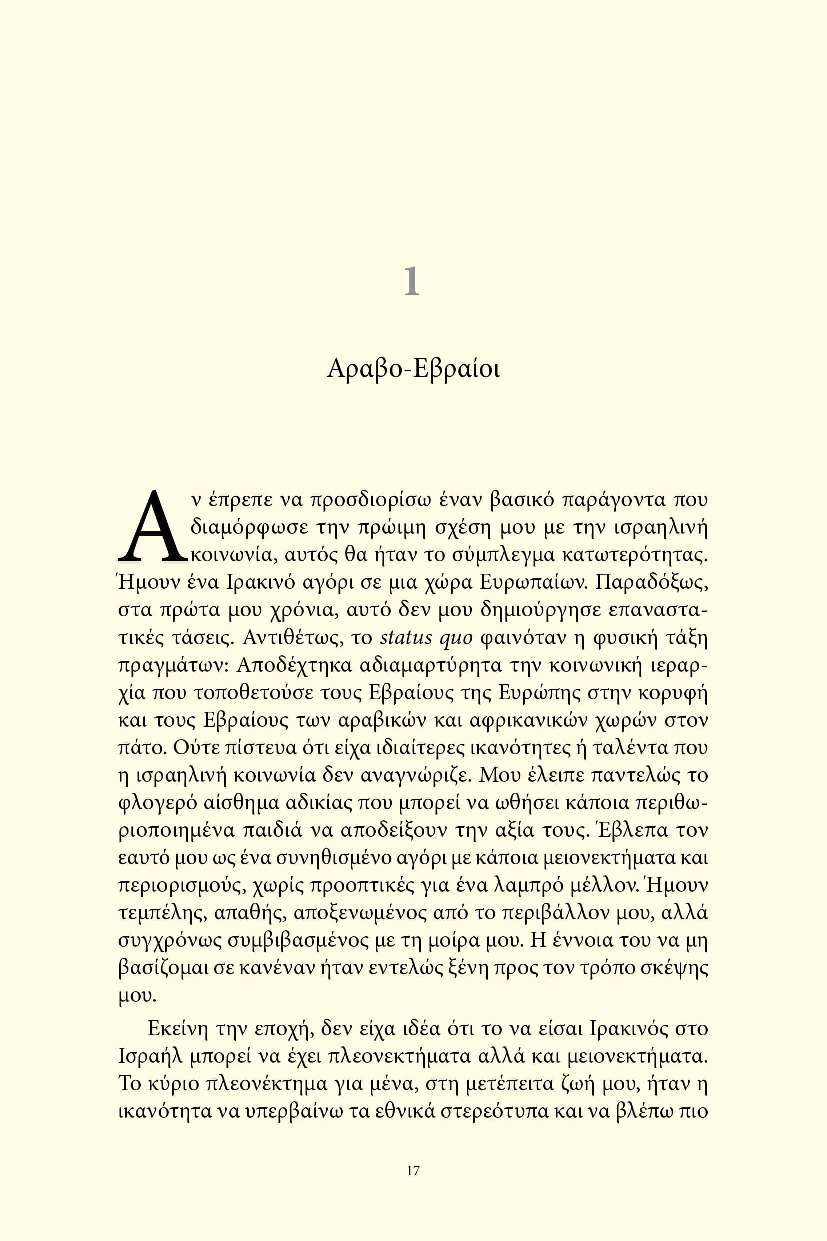 Μια οικεία και ελκυστική ιστορία ζωής, που αναγκάζει τον αναγνώστη να επανεξετάσει τρεις πολύ διαφορετικούς κόσμους –το Ιράκ, το Ισραήλ και τη Βρετανία‒ στις μέσες δεκαετίες του 20ού αιώνα. Μια στοχαστική και διορατική βουτιά στην ταυτοτική πολιτική του Αραβο- Εβραίου από έναν από τους σημαντικότερους σύγχρονους διανοούμενους της Βρετανίας. Αλλά και το καλύτερο βιβλίο που διάβασα όλη τη χρονιά.