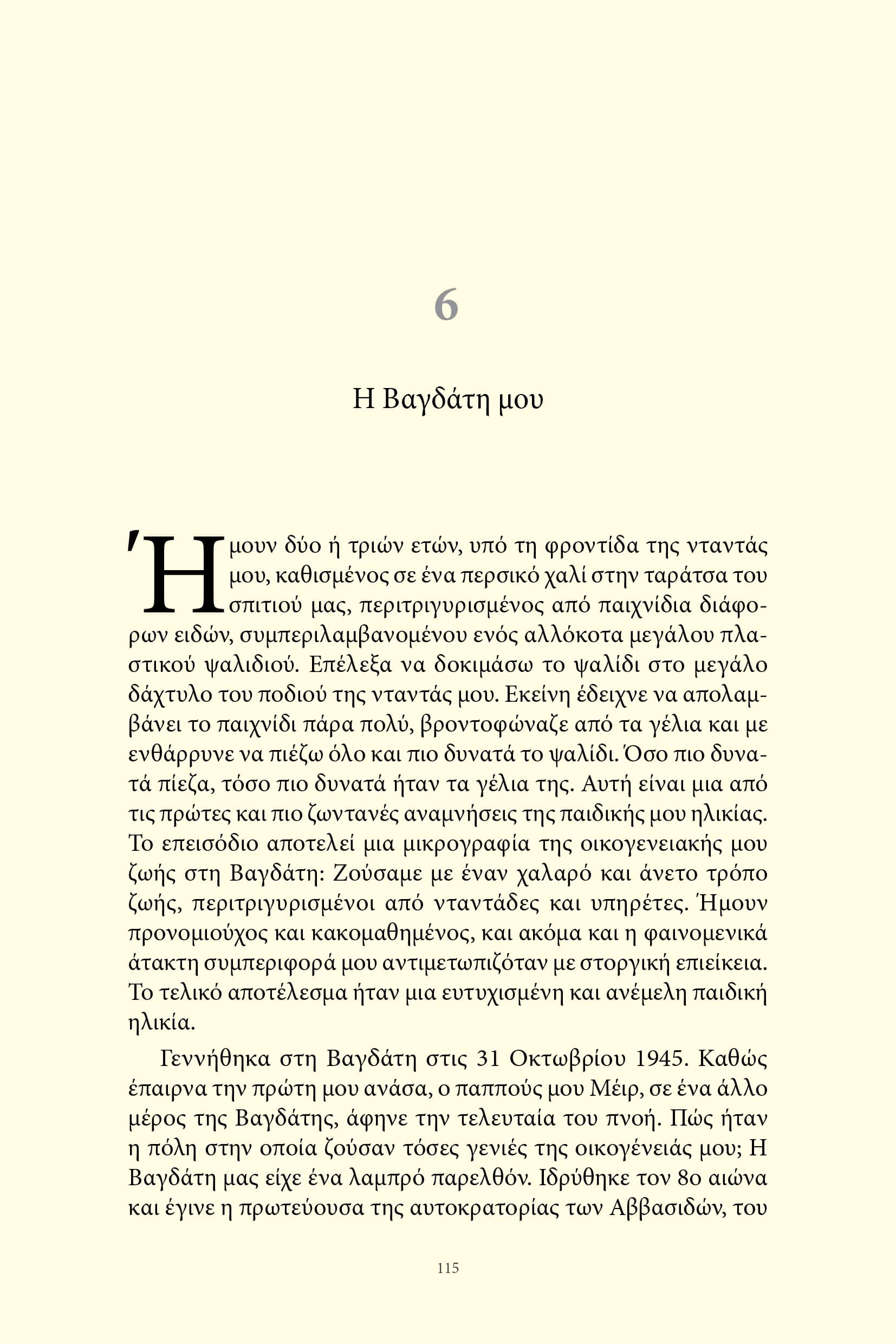 Ετούτα τα απομνημονεύματα ενός Αραβο-Εβραίου, με την ζωντανή εικόνα ενός παλιού κόσμου των Εβραίων και των Αράβων στο Ιράκ με «κοινό παρελθόν, αλληλένδετη ιστορία και αιώνια κληρονομιά πολυπολιτισμού, θρησκευτικής ανοχής, κοσμοπολιτισμού και συνύπαρξης», προσφέρουν στους αναγνώστες την ευκαιρία να φανταστούν εκ νέου μια ζωή που δεν κυβερνάται από τη βία, το φόβο, την εξαπάτηση και τον αποκλεισμό.
