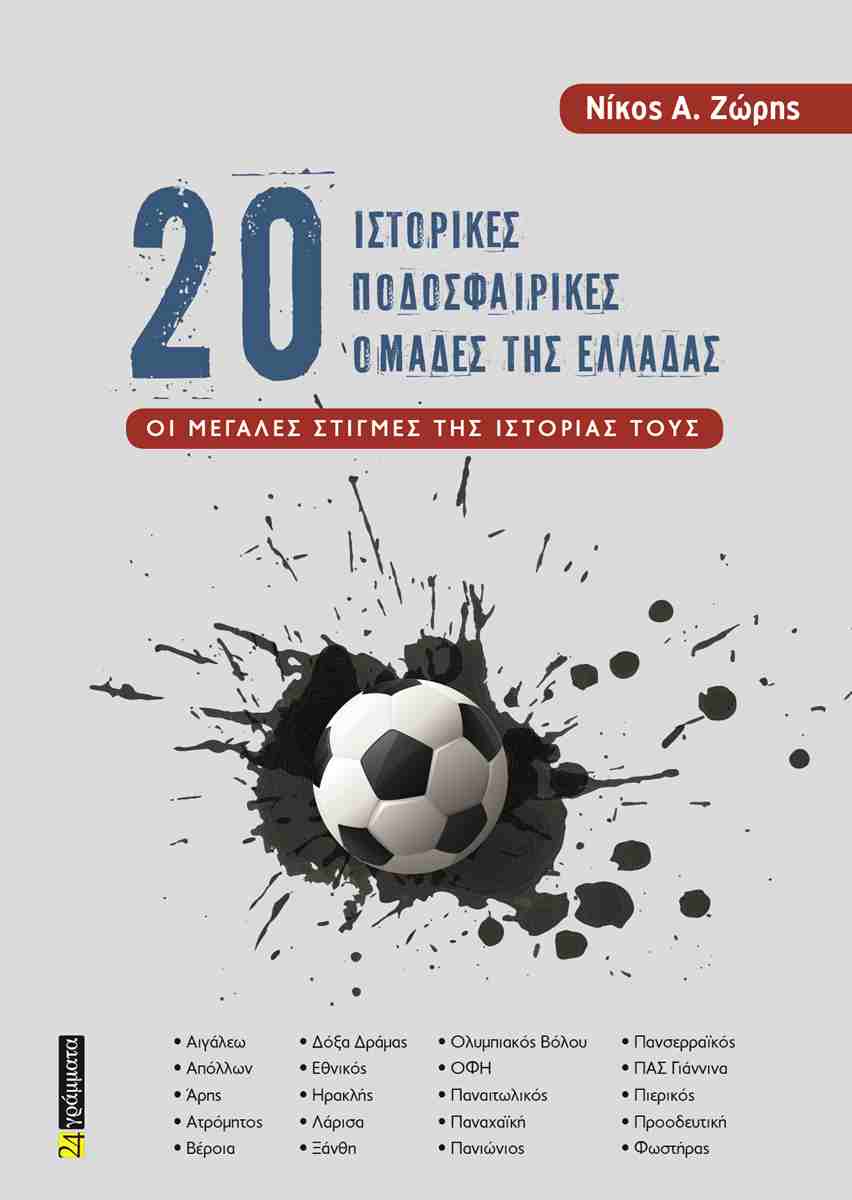Ένα καταπληκτικό βιβλίο – λεύκωμα, που όμοιό του δεν έχει κυκλοφορήσει στην ελληνική αγορά. Ο συγγραφέας Νίκος Ζώρης καταγράφει την πορεία 20 ιστορικών ποδοσφαιρικών ομάδων της Ελλάδας, από την ίδρυσή τους μέχρι σήμερα και κάνει αναφορά στις μεγάλες στιγμές τους και σε όλους τους αξιόλογους ποδοσφαιριστές τους. Αυτές οι αναφορές συνοδεύονται από πλήθος φωτογραφιών. Φωτογραφίες που έχουν κρατήσει την αλήθεια και έχουν αιχμαλωτίσει τον χρόνο. Ένα βιβλίο που θα πρέπει να διαβάσουν όλοι οι αγνοί Έλληνες φίλαθλοι, οι οποίοι αγαπούν το ποδόσφαιρο. Ένα βιβλίο μέσω του οποίου οι πιο μεγάλοι σε ηλικία φίλαθλοι θα κάνουν μια νοσταλγική περιήγηση στη μακρά περίοδο ύπαρξης του ελληνικού ποδοσφαίρου, θα θυμηθούν, θα νοσταλγήσουν, θα συγκινηθούν, ενώ οι νεότεροι θα πληροφορηθούν και πολλά πράγματα για κάποιες εποχές που δεν είχαν την τύχη να γνωρίσουν.