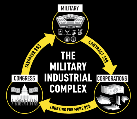 Το βασικό σύστημα λειτουργεί ως εξής: Πρώτον, το Κογκρέσο παίρνει υπέρογκα ποσά χρημάτων από εμάς τους φορολογούμενους κάθε χρόνο και τα δίνει στο Πεντάγωνο. Δεύτερον, το Πεντάγωνο, στην ίδια γραμμή με το Κογκρέσο, μετατρέπει μεγάλα τμήματα αυτών των χρημάτων σε συμβόλαια για τους κατασκευαστές όπλων και άλλες εταιρείες μέσω συμβάσεων υπερβολικά προσοδοφόρων, χαρίζοντάς στις εταιρίες δεκάδες δισεκατομμύρια δολάρια σε κέρδη. Τρίτον, οι εν λόγω εργολάβοι χρησιμοποιούν εν συνεχεία ένα μέρος των κερδών προκειμένου να ασκήσουν πίεση στο Κογκρέσο με σκοπό ακόμη περισσότερα συμβόλαια με το Πεντάγωνο — συμβόλαια τα οποία το Κογκρέσο είναι γενικά ενθουσιωδώς πρόθυμο να προτείνει, διαιωνίζοντας έναν φαινομενικά ατελείωτο κύκλο.