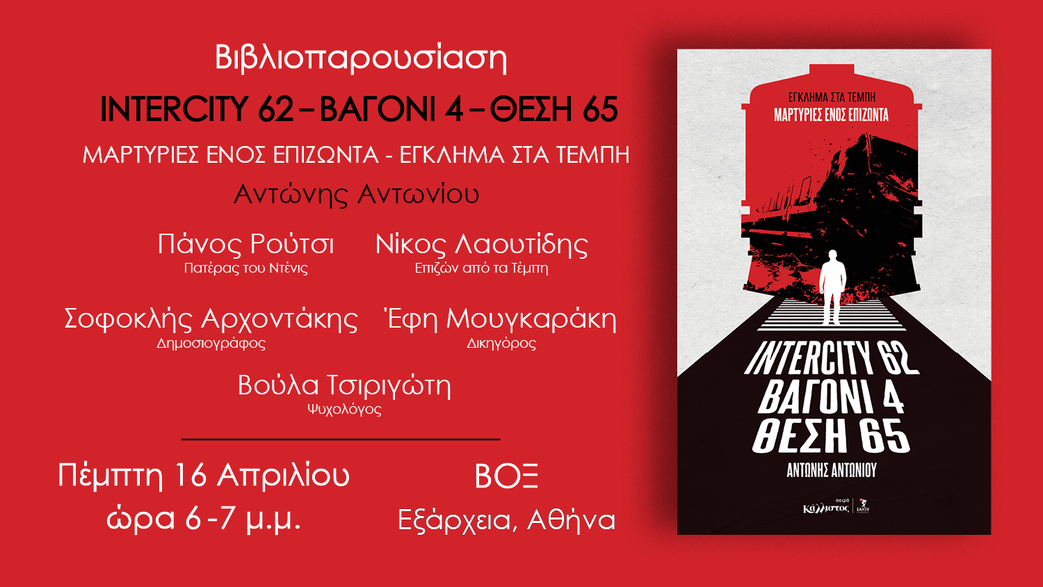 ΤΕΜΠΗ ΒΟΞ FB POST (1) Published 30 Μαρτίου, 2026. Size: 1500 × 844 in Βιβλιοπαρουσίαση INTERCITY 62 – ΒΑΓΟΝΙ 4 – ΘΕΣΗ 65 / ΒΟΞ – ΑΘΗΝΑ < Previous Επόμενο >