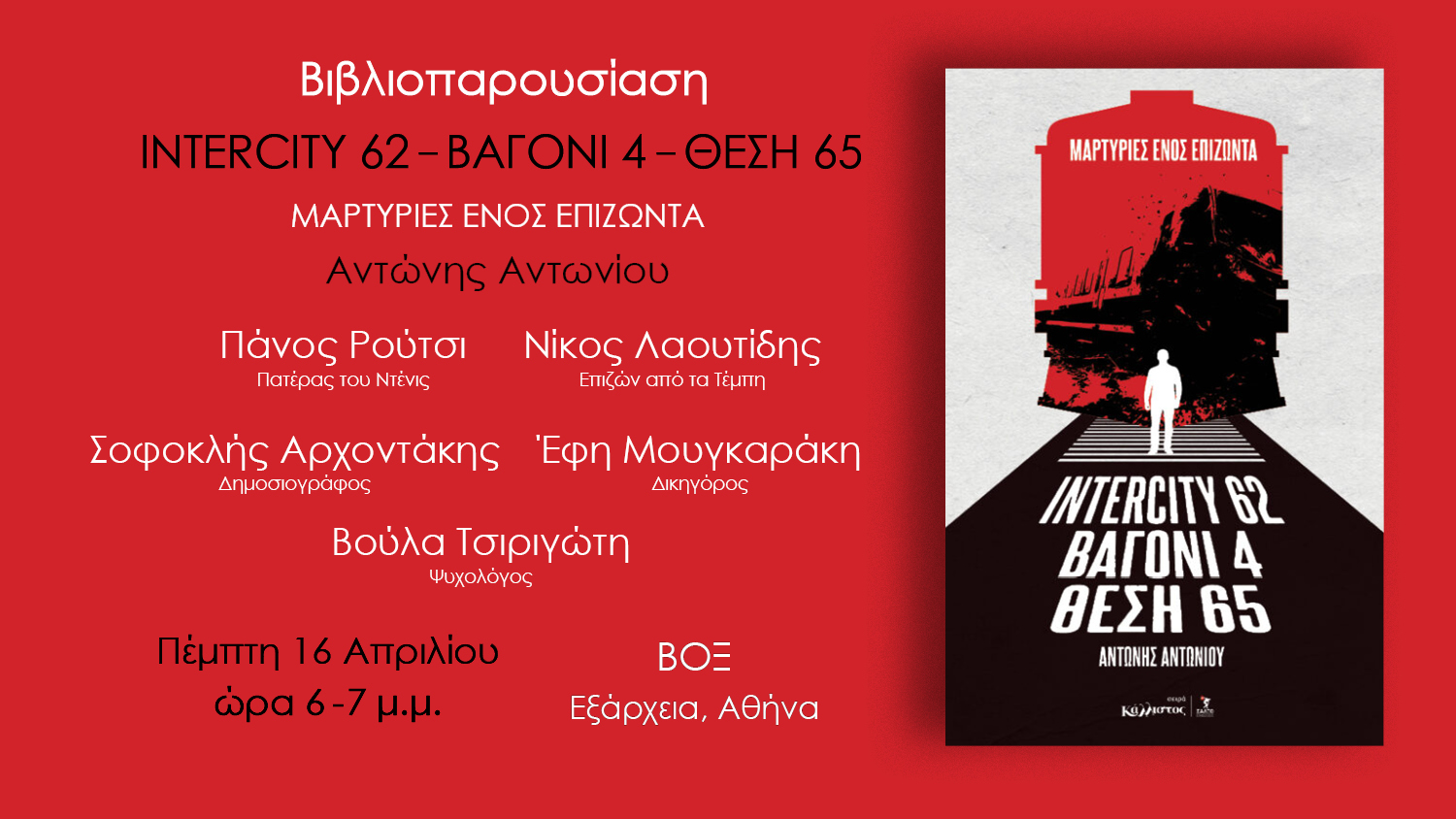 ΤΕΜΠΗ ΒΟΞ FB POST Published 30 Μαρτίου, 2026. Size: 1500 × 844 in Βιβλιοπαρουσίαση INTERCITY 62 – ΒΑΓΟΝΙ 4 – ΘΕΣΗ 65 / ΒΟΞ – ΑΘΗΝΑ < Επόμενο >
